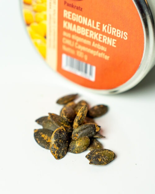 Knusprige Kürbiskerne Chili Cayennepfeffer – Der perfekte Snack für zwischendurch! Diese regionalen Kürbiskerne sind geröstet und mit einem Hauch von Chili Cayennepfeffer verfeinert und bieten eine einzigartige Kombination aus knusprig und aromatisch. Natürlich, lecker und ideal für alle, die gesunde Snacks lieben. Inhalt 100g