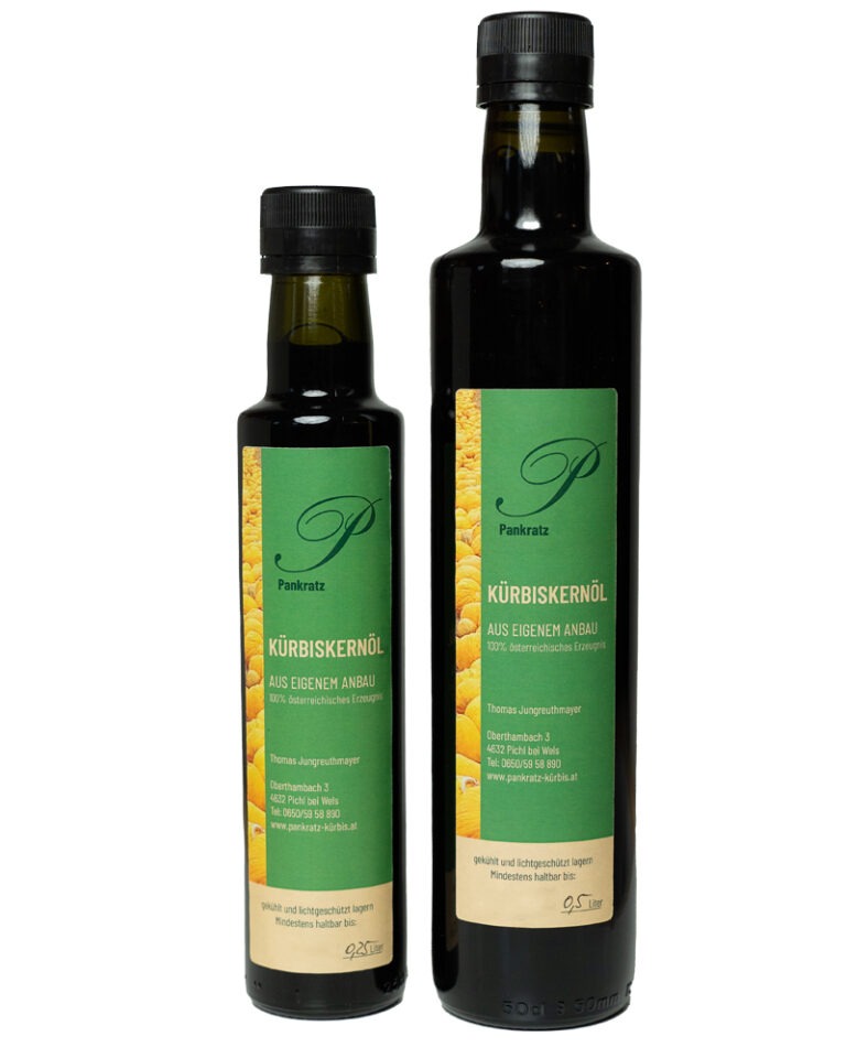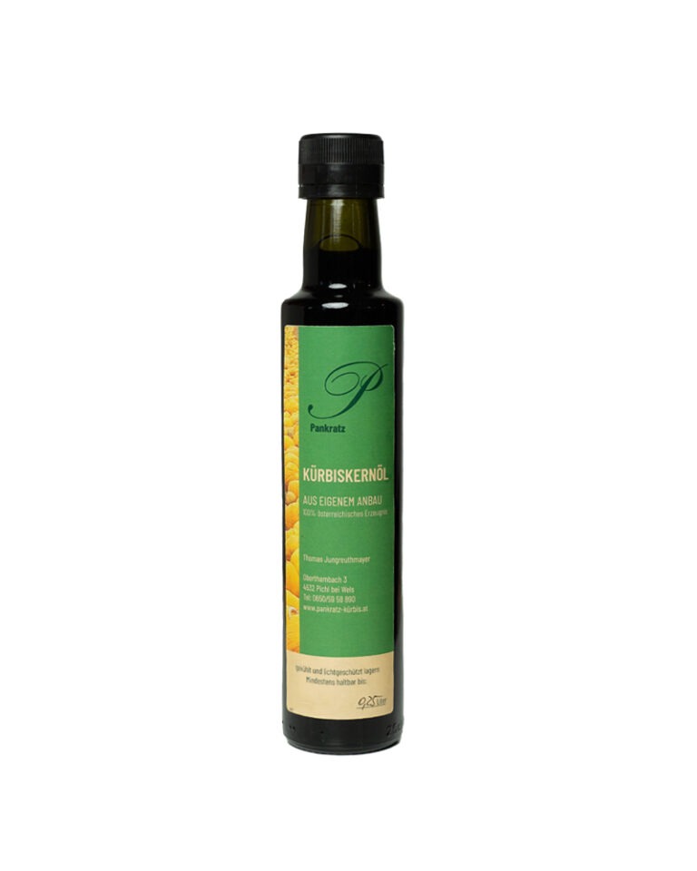 Inhalt 250ml Genießen Sie die hohe Qualität und den authentischen Geschmack unseres Kürbiskernöls – ein wahres Stück Oberösterreich, das in Ihrer Küche nicht fehlen sollte. Ideal für Feinschmecker, die das Beste der Natur schätzen!